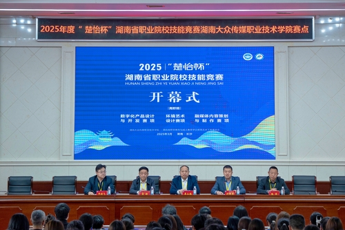 On March 21, the opening ceremony of the 2025 "Chuyi Cup" Hunan Provincial Skills Competition for Vocational Colleges (HNMMC competition site) was grandly held at the Academic Lecture Hall of HNMMC. A total of 455 contestants from 60 vocational colleges across the province are competing in three categories: Environmental Art Design, Digital Product Design and Development, and Integrated Media Content Planning and Production.