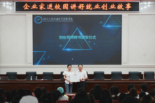 Following the lecture, He Zhanbing, Deputy Party Secretary and President of HNMMC, presented Cao Rui with a letter of appointment as an entrepreneurship mentor.