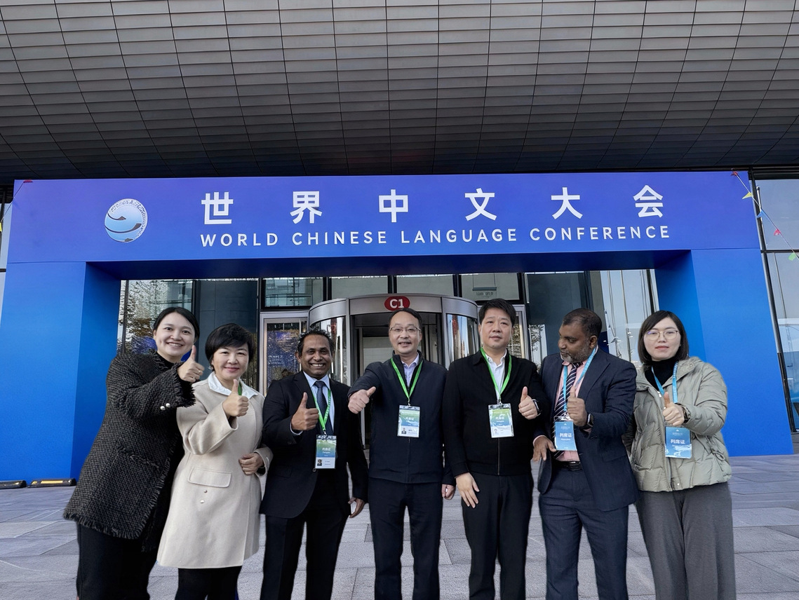 From November 14 to 16, the 2025 World Chinese Language Conference was held at the China National Convention Center in Beijing under the theme "Innovation Leads, AI Empowers: Learning Chinese without Borders". Xie Jingwei, Deputy Secretary of the CPC Committee of HNMMC, Najeeb, Executive Vice President of the Chinese Language Center at Villa College, Maldives, Ma Yuehan, the Chinese Director of the Center, and Zhang Wei, Dean of the International Education School of Chang'an University, were invited to attend.
