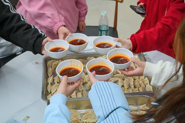 Taking advantage of the "Lidong" (Beginning of Winter) solar term, the event gathered 30 student representatives from across the college. Under the guidance of the canteen chefs, the students were divided into groups to learn how to prepare filling and make dumplings, experiencing the traditional food-making process firsthand. Once the dumplings were boiled, the students enjoyed the fruits of their labor together, deepening their understanding of seasonal cultural customs. The scene was filled with warmth and a sense of accomplishment.
