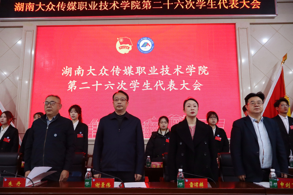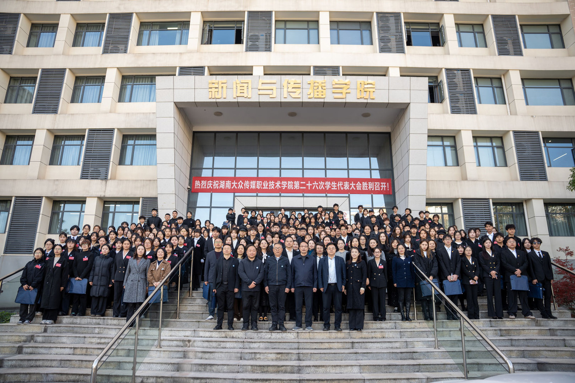 On November 25, the 26th Student Congress of Hunan Mass Media Vocational & Technical College (HNMMC) was solemnly held in the Academic Lecture Hall. Xie Jingwei, Deputy Secretary of the CPC Committee of the college, and Vice Presidents Lei Junlin, Zhu Dan, and Shen Jianfei attended the congress. Heads of relevant functional departments and CPC and Chinese Communist Youth League (CCYL) organizations of the secondary schools, together with 211 official delegates and 27 non-voting delegates, gathered to pool youthful wisdom and collective strength and to jointly chart a new blueprint for the college’s development.