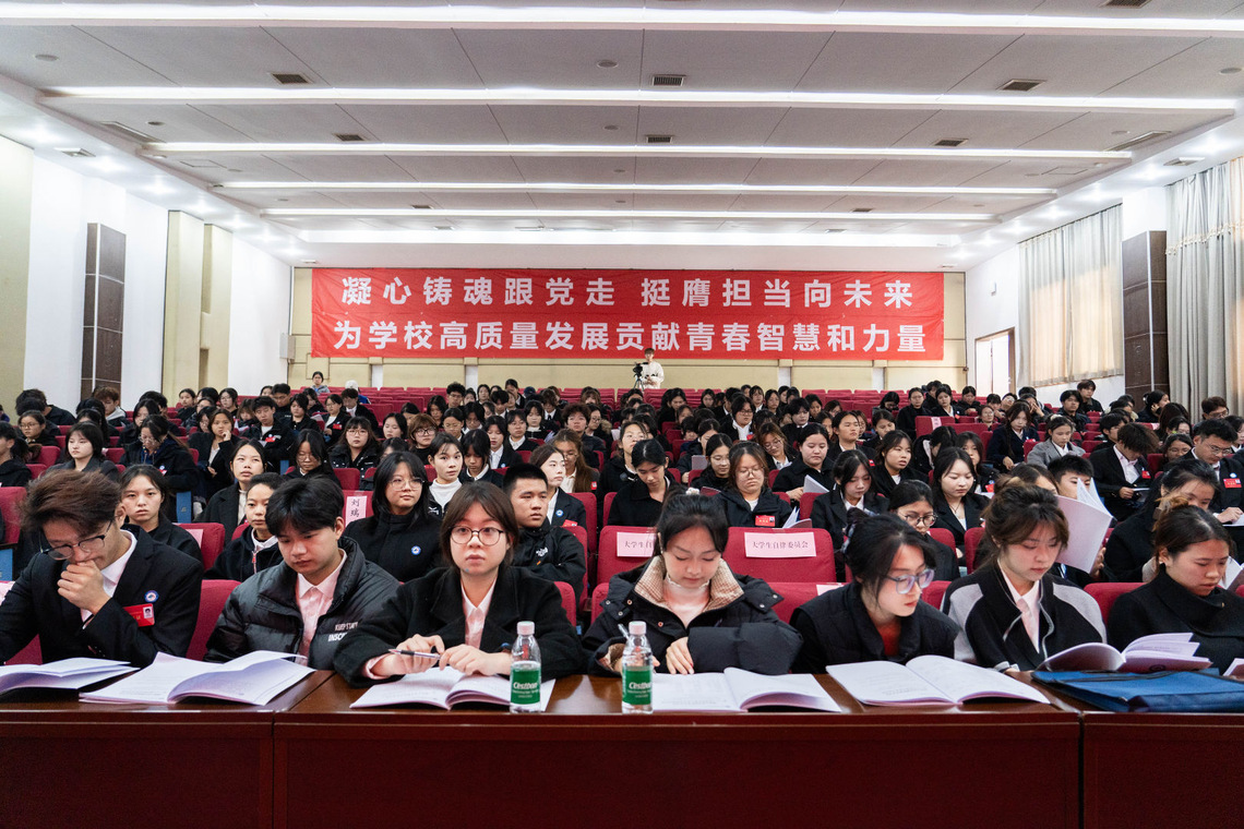 Xie Jingwei delivered a keynote address, in which he fully affirmed the achievements of the previous Student Union and put forward four expectations for young students across the college: to set sail with ideals and become dream chasers who unite hearts and minds; to take service as a responsibility and become practitioners who connect teachers and students; to ground themselves in solid work and become leaders who empower growth; and to measure themselves by discipline and become role models of self-discipline. He encouraged all delegates to shoulder their missions and integrate their personal aspirations into the overall development of the college.